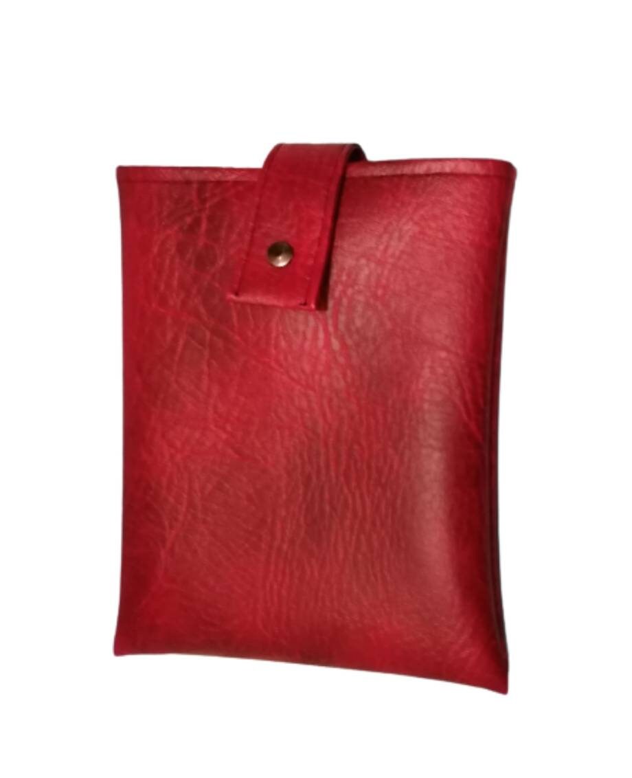 Handmade, Padded Faux Leather Book Sleeve/Tablet Cover with Cotton inner fabric and snap on strap to the top.
